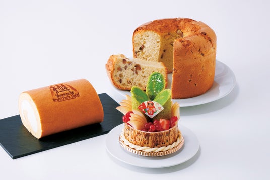 横浜ロイヤルパークホテル(横浜市西区みなとみらい横浜ランドマークタワー内/総支配人:雄城 隆史)は、1F デリカ&ラウンジ「コフレ」にて、2024年12月27日(金)より年末年始スイーツフェアを開催。スイーツ3種を順次販売いたします。お正月飾りの定番“門松”をモチーフにした見た目も華やかな「門松ケーキ」や、名古屋コーチン卵や和三盆などを使用し、素材の味を存分に楽しめる「Yokohama Royal Park Hotel 極 和三盆ロールケーキ」、国産栗を使用した「和栗シフォンケーキ」をご用意いたしました。