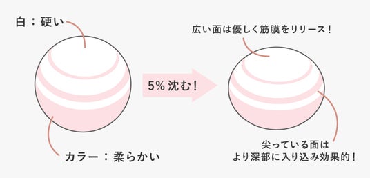 白い部分と、色がついた部分では硬さが異なり、変形することで身体にしっかりと入り込みます。