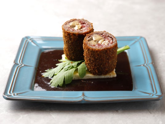 黒トリュフソース俺のシリーズの代名詞ロッシーニをステーキではなくレアカツで表現しました。