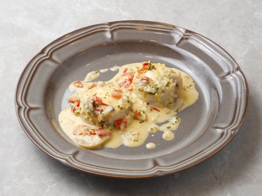 舌平目のデュグレレ風古典的フランス料理の一つで香味野菜や白ワインで煮た魚料理「デュグレレ風」。
