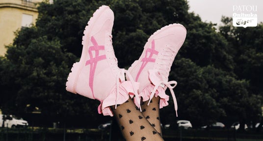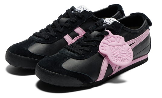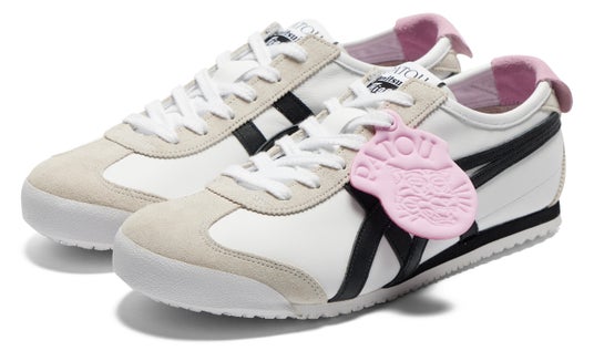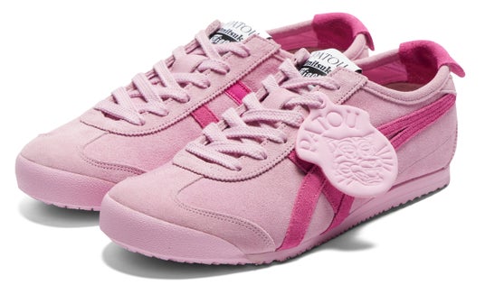 オニツカタイガーのアイコニックな「MEXICO 66(TM)」には、洗練されたシルエットにパトゥのアイコンであるグログランリボンがオニツカタイガーストライプの一部にあしらわれています。ピンクとブラックの限定カラーモデルは、パトゥのシグネチャーピンクが際立つ仕上がりに。さらにオニツカタイガーのタイガーモチーフも新たに再解釈され、シューズのチャームとして大胆に取り入れられています。このチャームは取り外し可能で、スタイルに合わせて自由にアレンジをお楽しみいただけます。