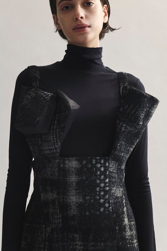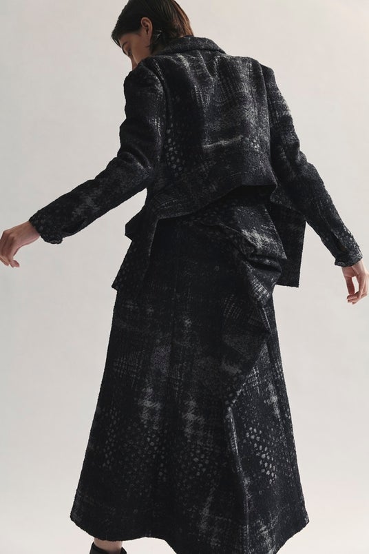 2024-25年秋冬コレクションを象徴するキュビズムを、クラシックな千鳥格子とチェック柄の組み合わせで表現されたセットアップ、生地の精巧な分解と再構築による、異なる素材の調和を追求したレザー/ウールの切替ジャケットなど、POP-UP STOREに新作が揃います。