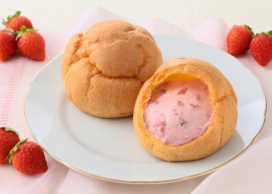 特長:苺果肉を加えたホイップクリームを、風味豊かなシュー皮にたっぷり詰めました。苺のジューシーさや甘ずっぱさ、果肉感を楽しめるプレミアムなシュークリームです。