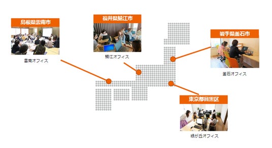 2018年には、東京に次ぎ福井県鯖江市で空き家を活用したオフィスをオープンし、島根県雲南市、岩手県釜石市などに展開、社員から業務委託まで、それぞれのライフスタイルに合わせた形態で働ける環境を整えることで、これまでに100人以上のママたちにテレワーカーとして活躍できる場を提供しています。