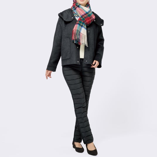前後両面にダウンを使用した、今季3シリーズの中で最もあたたかいタイプ。ウエスト、サイド、裾はストレッチ性のある別布使いで穿きやすさを実現しました。