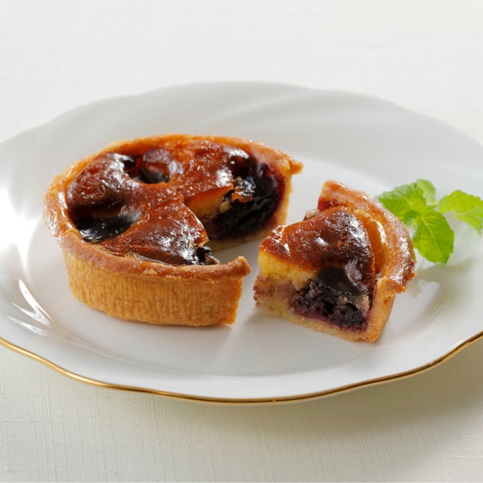ミニダークチェリータルトラム酒がほんのり香るタルト生地はしっとりとした食感。ダークチェリーのシロップ漬けも甘さが控えめになっているので、食後のデザートとしても食べやすい仕上がりです。