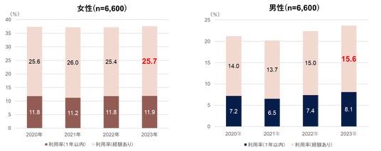 ・美容医療利用率 (美容医療利用率:1年以内、または過去に美容医療を利用した人の割合)