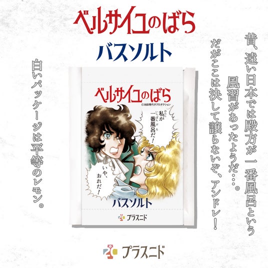 「体感温度を2度上げる」をコンセプトとした高品質製品をお届けするゲンナイ製薬のブランド【プラスニド:千代田区、代表:上山永生】は【ベルサイユのばら バスソルト】 を11月15日より販売を開始します。