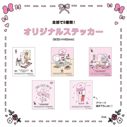 エスターバニーのコミックイラストがかわいいオリジナルステッカー。ここでしか手に入らないアイトーク描き下ろしイラストデザインも!(サイズ:幅35×高さ45mm)