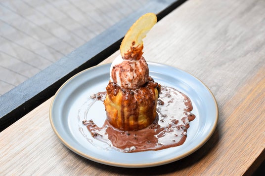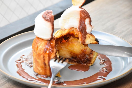 サクサクのパイ生地と旬の甘酸っぱいりんごのソテー、そして芳醇な風味のチョコレートのハーモニーを存分にお楽しみください。