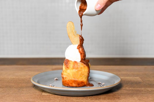 別添えのチョコレートソースには、カカオ由来の植物や花のような香りを感じるフレーバーのチョコレート”SAVORY”を用いています。温かいソースで、カカオの個性溢れる豊かな香りをお楽しみください。
