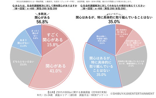 2022年8月にSHIBUYA109 lab.が「Z世代のSDGsに関する意識調査」を実施したところ、全体のおよそ3分の1のZ世代が社会課題解決に対して関心はあるものの、具体的なアクションをどう起こしていけばよいのか悩んでいることが分かりました。