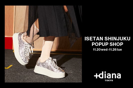 ダイアナ株式会社(本社:東京都渋谷区神宮前)が展開する大人の女性にむけたスニーカーブランド「+diana(プラスダイアナ)」よりPOPUP SHOPのご案内です。2024年11月20日(水)~26日(火)の期間限定で、伊勢丹新宿店本館2階婦人靴売り場にて、プラスダイアナ単独のPOPUP SHOPを開催いたします。