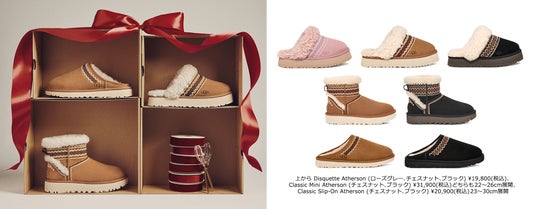 Tokyo ( 2024年11月13日) – 南カリフォルニアを拠点とするグローバルライフスタイルブランドのUGG (a division of Deckers Brands [NYSE: DECK])は、これから迎えるホリデーシーズンを彩るUGGの2024年Holiday Collection (ホリデー コレクション)を発表します。美しいハンドステッチのディテールやカーリーシープスキンがアイコニックな3つのスタイルで新登場。他にも自分へのご褒美やホリデーシーズンのギフトとして、恋人、友達、家族など大切な人に贈りたくなるトレンドのアイテムから、コンフォートな定番アイテムまで、今シーズンは「Unbox Joy – ギフトをあげる楽しみ!あける喜び!」をテーマにキャンペーンクリエイティブを展開します。是非UGG公式サイト( https://bit.ly/3YN6t4N )にてフルラインナップをチェックしてみてください。