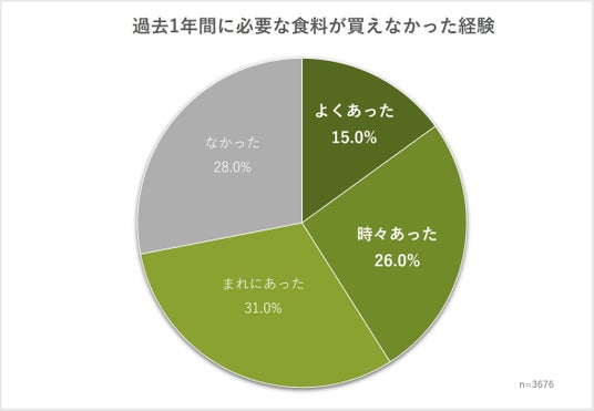 たとえば、2024年1月から10月にかけてグッドごはんへの新規利用登録を申し込んだ世帯に対し「過去1年間に必要な食料が買えなかった経験」を質問したところ、「よくあった」「時々あった」と回答した人は計4割に及びました[1]。