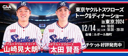 東京ヤクルトスワローズを支える山崎 晃大朗コーチ&太田 賢吾選手の2名をゲストに迎え、スワローズの裏側に迫る特別な夜!ファンの皆様にヤクルトスワローズの裏側やゲストの想いをじっくりと語っていただくファン感謝トーク&ディナーショー。オフシーズン限定の今だから楽しめる特別イベントです。ゲスト交流会参加特典(ワンドリンク付)やスリーショット記念撮影、私物オークションやグッズの抽選会など、盛りだくさんな約2時間。あなただけの楽しみ方で、楽しいひと時をお過ごしください!