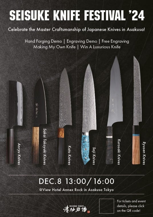 株式会社清助刃物(本社:東京都台東区、代表取締役:中村 充宏)は、2024年12月8日(日曜)に「清助刃物祭Seisuke knife festival 2024」を、浅草ビューホテル 六区アネックスにて開催することをお知らせします。