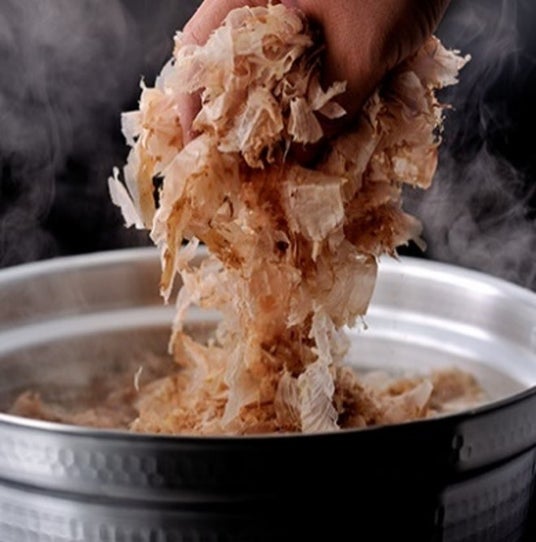 日本料理の味の基本をなすものは、なんといっても出汁です。出汁が料理のすべてを決定づけるといっても過言ではありません。日本料理の場合、出汁の材料の中核をなすのはかつお節です。つまり、出汁の良し悪しはかつお節にかかっていると思われます。いぶすき秀水園松尾調理長はその本枯節の削り節を仕入れるのではなく、そのままの鰹節を仕入れ当館の調理場で削っております。その一番削りの本枯節の出汁をふんだんに使用した美冬会席をお客様にご提供致します。