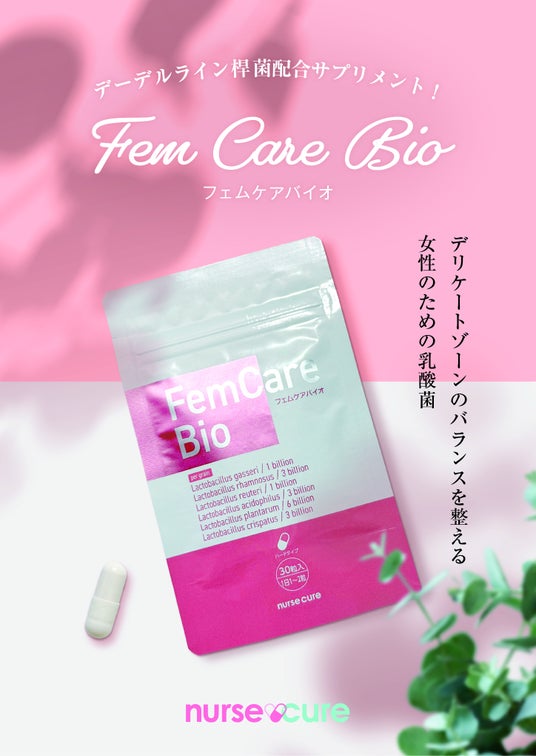 現役看護師が開発、膣内環境をサポートするフェムケア サプリメント「Fem Care Bio」株式会社ナースキュアの「Fem Care Bio」は、デリケートゾーンをサポートするデーデルライン桿菌サプリメントです。開発者自らが20年に渡り延べ1万5千人の患者の症例を診てケアした経験から、腸内細菌に着目、開発しヒット商品となった菌活サプリメント「シンバイオティクスEX」(2021年~販売中)に次ぐ待望の第二弾として発売されたサプリメントです。