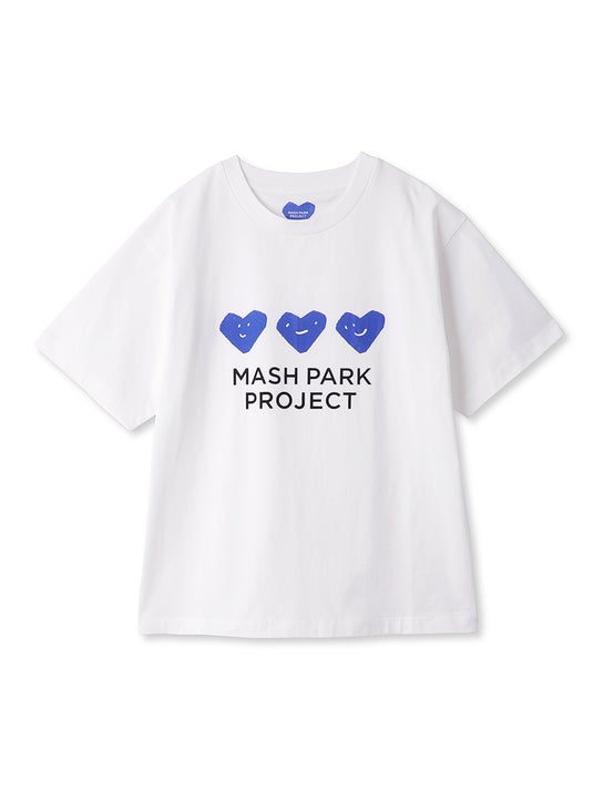 胸元にデザインされているのは、“子どもたちに最高の笑顔を届ける”ことをコンセプトとするチャリティプロジェクト「MASH PARK PROJECT」を象徴するブルーのハート。関わる人すべてに笑顔になっていただきたいという想いが込められています。