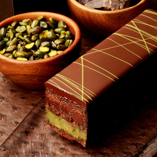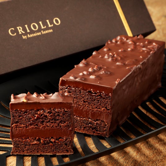 フランス語で「宝物」という意味のチョコレートケーキ「トレゾー」。しっとりしたチョコレートスポンジと、とろけるチョコレートクリームの濃厚な味わいが人気のこのシリーズには、毎年新作が登場します。今年の新作は、ザクザク感が楽しいプラリネ!粗めに仕上げたアーモンドとヘーゼルナッツのプラリネに自社でローストしたカカオニブも加え、ザクザク食感を強調しました。