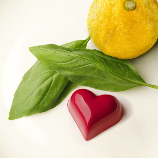 柚子・バジル 日本在住30年のサントスシェフならではの経験から、日本の柚子とヨーロッパのバジルを組み合わせた、大胆で革新的なチョコレートに。ガナッシュの滑らかさもご堪能ください。
