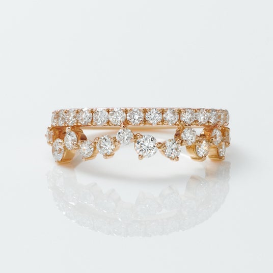 バラのつぼみを思わせるドーム型のローズカットダイヤモンド。「Hyacca」では、傷や内包物が少なく透明感の高いローズカットだけを厳選し、メレダイヤモンドの繊細なラインが、ペアシェイプやオーバルなどのユニークなファンシーカットを、甘くなり過ぎないモダンな印象へ仕上げます。