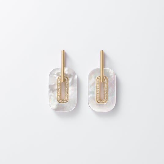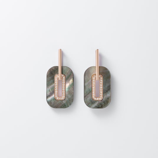 マザーオブパールとは、その名の通り真珠を作り出す貝(真珠母貝)のことです。シェルの模様は一つ一つ表情が異なり、角度を変えると現れる虹色の輝きがダイヤモンドの優美なきらめきとともに女性らしい華やかさを引き立てます。