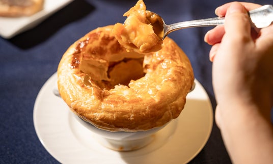 ごろっとオマール海老の入ったビスク風の一品「オマール海老のパイ包み焼き」