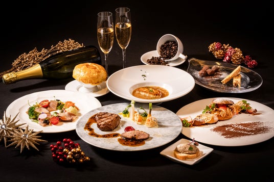 フォアグラやトリュフ、オマール海老、和牛ロース肉などの豪華食材に加え、皮と脂の旨みのバランスがよく、濃厚な味わいの「河内鶏」や甘みのある脂が特長の「なにわポーク」、果肉が柔らかく甘みのある「淡路玉葱」などの地元関西の食材を使用し、「リエット」や「パイ包み焼き」などクラシカルなフレンチ仕立てのコースに仕上げました。大切な方と過ごす1年に1度の特別な夜を、ぜひクロスホテル大阪でお過ごしください。