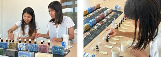 今回発売するボタニカルハンドメイド洗顔石鹸「希望-KIBOU-」は、FC琉球さくらの選手が実際に香りをブレンドし、つくる過程から一緒に取り組んでまいりました。「希望-KIBOU-」というネーミングは、沖縄の未来を明るく照らす「希望」になることを願って名付けており、石鹸に描いた色鮮やかなマーブル模様は、紅型模様のユニフォームをイメージしています。