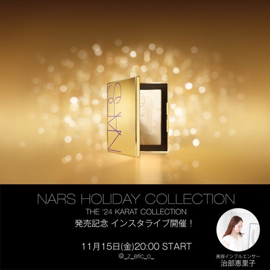 NARSホリデーコレクション「THE ‘24 KARAT COLLECTION」の魅力を、美容系インフルエンサー、治部恵里子さんにご紹介いただくインスタライブを11月15日(金)20:00より配信いたします。