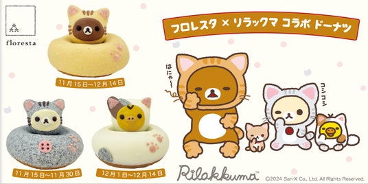 フロレスタでは11月15日から12月14日までの期間限定で、「リラックマ」コラボドーナツを販売いたします。