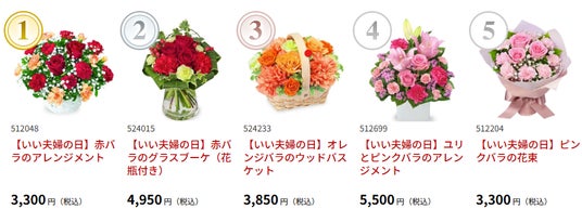 花キューピットの「いい夫婦の日」商品ランキングを発表!