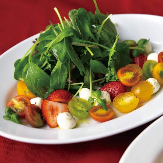 苺とトマト、モッツァレラチーズのカプレーゼ サラダ仕立て