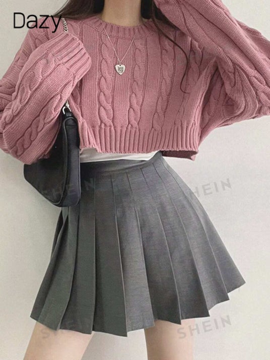 商品名:DAZY レディース ソリッドカラー ラウンドネック ニット ショート セーター プルオーバー