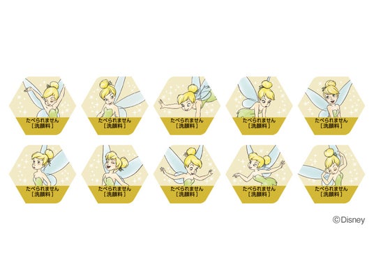 今回は、その「スイサイ ビューティクリア ゴールド パウダーウォッシュ」からディズニーの人気キャラクター「ティンカー・ベル」をデザインした限定パッケージが登場します。カプセルひとつひとつに、10種類の異なるティンカー・ベルが描かれており、毎日の洗顔タイムを楽しく演出します。