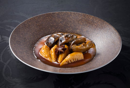 風味豊かな天白椎茸を筍とともにやわらかく煮込みました。スターアニス(八角)の香りが深い味わいを生み出し、満足感を感じられる一品です。