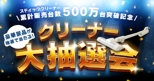 アイリスオーヤマ株式会社(本社:宮城県仙台市、代表取締役社長:大山 晃弘)が販売する、スティッククリーナーシリーズの国内販売台数が500万台(※1)に達しました。また、累計販売台数500万台(※1)を記念して当社公式通販サイト「アイリスプラザ」にて、500万台突破記念キャンペーンを開催(※2)します。