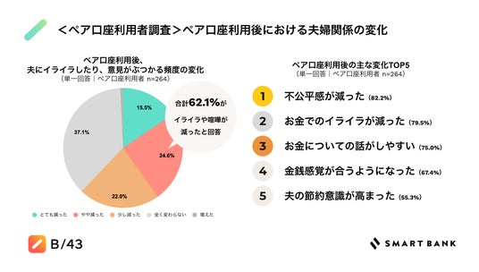“ペア口座”の利用で、「夫へのイライラや喧嘩が減った」と回答した妻が6割超