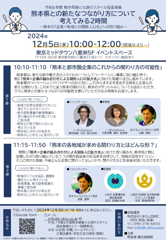 件名:「令和6年熊本県新たな旅のスタイル促進事業セミナー聴講希望」