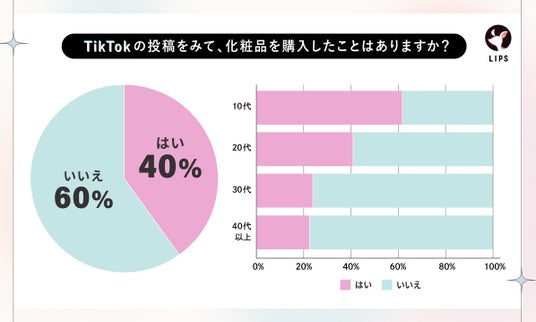 年代別にみると、10代の60%、20代の40%ものユーザーがTikTokの投稿によって化粧品の購買が生じた経験があるということが判明しました。