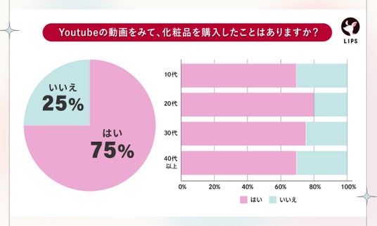 媒体ごとの購買有無の調査で注目すべきは、75%ものユーザー、すなわち4人中3人が「YouTube」の投稿をもとに化粧品を買ったことがあるという点です。「気軽に使用しているツール」の設問では上位に入らなかったものの、長尺動画ならではの豊富な情報量を武器に、リアルな購買に繋がっていると言えるようです。「Youtube」は、他のSNSとは違った目的・シーンで利用されていることが推察されます。