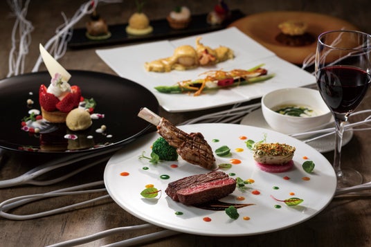 宮崎牛、阿波鶏、仔羊の3種を盛り合わせたメイン料理のほか、入手困難といわれる東京の銘柄豚「TOKYO X」、オマール海老やホタテ貝まで取り入れた贅沢なメニューです。デザートはこの時期を華やかに彩るいちごのスイーツなど4種からお選びいただけます。