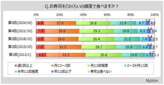 マイボイスコム株式会社(東京都千代田区、代表取締役社長:高井和久)は、5回目となる『お寿司』に関するインターネット調査を2024年10月1日~7日に実施しました。
