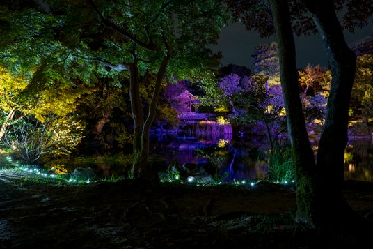 また、庭園には四季折々の花が咲きほこり、変化に富んだ景観は「十三景」と称されています。そのような四季の自然が楽しめる渉成園の特徴を活かし「四季の彩り」をコンセプトに、「色彩豊かな春」や「紅葉のグラデーション」など自然の色彩を取り入れた照明演出でお庭を彩ります。また、お庭の特徴である中央の「印月池」を活かした水鏡効果による水面に映る庭園の情景や様々な歴史ある建築物のありのままの情景を楽しんでいただけるような照明で演出します。