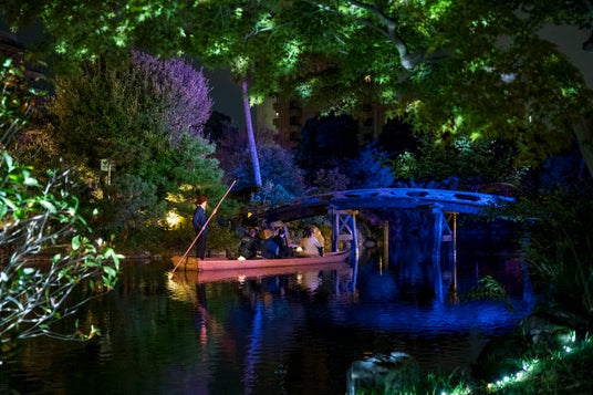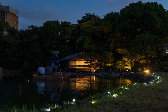 印月池を和舟にのって周遊。ライトアップされた園内を、舟上よりお楽しみください。