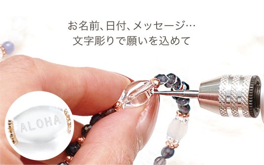 水晶やオニキスなどに、英数字で文字刻印を承ります。