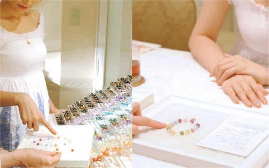生年月日より作成する「バースデイオーダーブレスレット」、ご自身でデザインする「マイデザインブレスレット」など、オーダーメイドブレスレットをその場で作成いたします。
