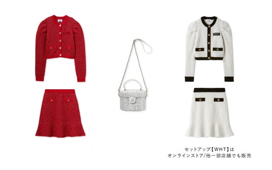※ツイードニットカーディガンおよびニットスカート【WHT】は、各オンラインストア(11/22(金)~)/ 名古屋パルコ店・阪急うめだ本店・福岡パルコ店(11/28(木)~)でも販売いたします。